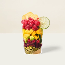Tart raspberry refresher smoothie with hints of mango and zesty lime