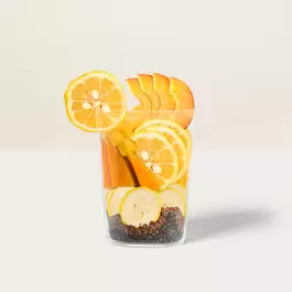 Sweet peach forward smoothie with tart and floral notes of citrusy yuzu