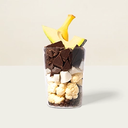 Iced sweet cappuccino shake swirled with notes of banana and cacao