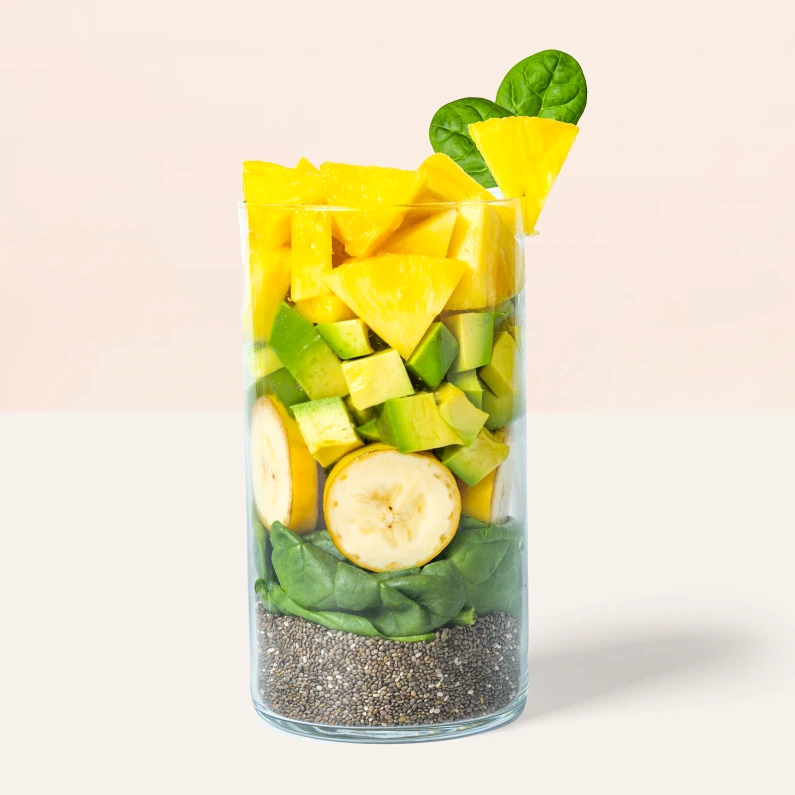 Meet your new go-to for glow-from-within nourishment. This tropical blend combines sweet pineapple, creamy avocado, and nutrient-rich spinach into a refreshing, functional smoothie. Pineapple delivers antioxidants and vitamin C, avocado adds healthy fats and fibre for balance, while spinach provides vitamins and iron for energy and digestion. The result is a smooth, clean blend that supports gut health, keeps you full, and leaves you energized.